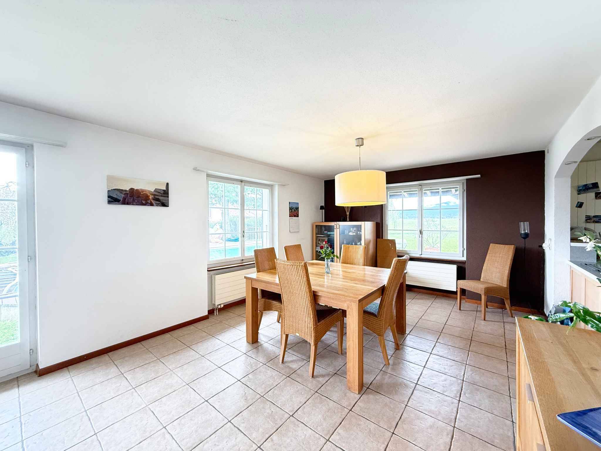 Vous rêvez d’espace, de calme et de nature ? Cette villa individuelle avec piscine, implantée sur une parcelle généreuse de près de 1’860 m2 en bordure immédiate de zone agricole, vous offre un cadre unique où sérénité et intimité sont au rendez-vous.